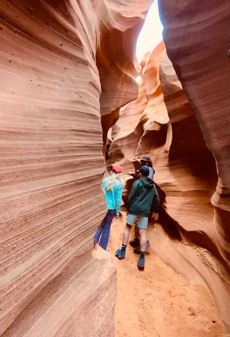 De route naar Page leidt ons langs Monument Valley. Wat een prachtige route om in het voorjaar te rijden! De woestijngrond is door de begroeiing en vele bloemen in alle kleuren van de regenboog gekleurd. Een route van ruim 4 uur, maar de tijd vliegt! In Page heerlijk relaxen en even bijkomen van alle “wandelgeweld” omdat het weer steeds slechter wordt. We doen een wasje, gaan winkelen, lekker eten bij een “Americana” restaurant met live muziek en er is tijd voor spelletjes. Page staat bekend om de slot canyons die allemaal in beheer zijn van de Navajo indianen. Wij bezoeken de volgende dag een canyon die beheerd wordt door een nieuwe organisatie die het behoud en de natuurervaring belangrijk vinden. Kleinschalig -> wij hadden een private tour door Owl en Rattlesnake Canyon. De kinderen vonden deze tour ook geweldig, ondanks dat de gids alleen Engels sprak waren ze enorm onder de indruk van de wandeling en de uitleg over het ontstaan van de canyons. Lake Powell en de Horseshoe Bend zijn natuurlijk ook door ons bezocht maar zijn toch minder bijzonder.